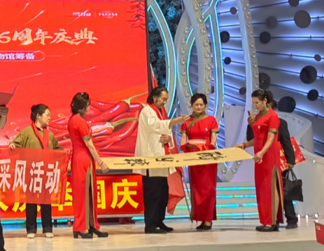 与此同时,梁园辞赋社常务副社长、著名书道家墨玄子还同台创作书法作品《醉牛辣,香天下》。在创作过程中,他笔锋游走,力透纸背,每一笔都刚劲有力,每一划都饱含深情。由礼仪小姐分两组双手撑拉六尺条幅,悬空创作的对联作品写好后一同展示,“醉牛辣,香天下”这六个简洁而有力的字在他的笔下熠熠生辉,不仅是醉牛辣集团的美好愿景,更寄托了大家对醉牛辣未来走向全国、香飘世界的殷切期盼。