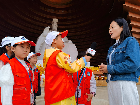 活动尾声,小记者们拿出提前准备好的采访提纲,主动向景区工作人员、过往游客递出话筒。围绕“拜祖大典筹备细节”“黄帝文化难忘记忆”等问题,他们认真倾听受访者分享,时不时抛出追问,在互动交流中挖掘关于祖源文化的鲜活故事,在实践中锤炼采访技能。带队老师表示,本次“采访+体验”实践活动,让孩子们从历史见证者成长为文化传播者,真正实现“在行走中学习,在感悟中成长”。