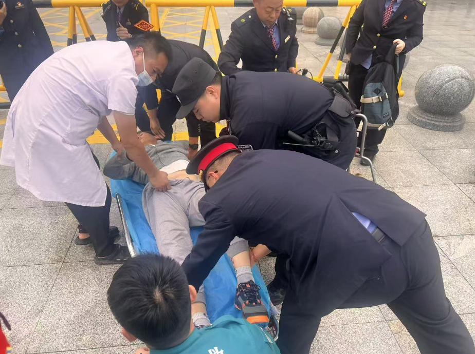 到达一站台后,民警发现一名旅客瘫坐在地,身体抽搐、口吐白沫,无法进行语言交流。现场警组立即按照突发事件处置预案分头行动:一人立即拨打120急救电话,清晰准确地报告现场情况和位置;其余人员尝试唤醒旅客,并迅速在其随身行李中查找身份信息和联系人。同时,现场指挥员有序调度,指令部分警力协同车站工作人员提前清理急救通道、移动障碍物,并利用车站广播寻找医护人员,多方协作为生命救援争取宝贵时间。