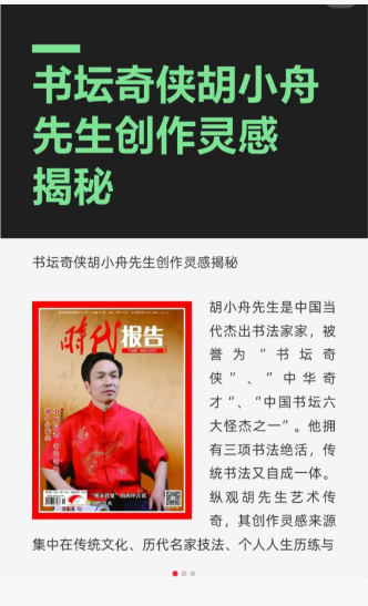 胡小舟先生是中国当代杰出书法家家,被誉为“书坛奇侠”、”中华奇才“、“中国书坛六大怪杰之一”。他拥有三项书法绝活,传统书法又自成一体。
