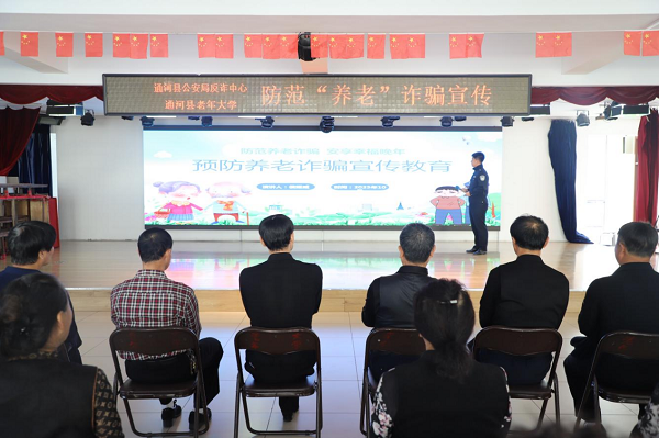 “大爷大娘,要是有人打电话说您子女出事急需用钱,千万别慌,一定要先打电话核实清楚!”在通河县老年大学的课堂上,民警结合真实案例绘声绘色地讲解着养老诈骗的常见手段与防骗技巧。